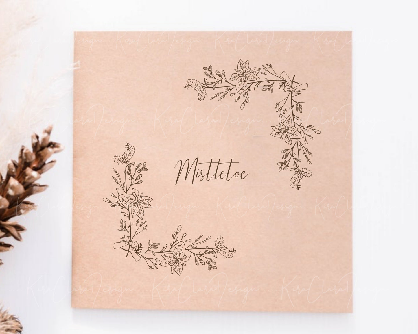 Hand drawn mistletoe botanical square frame/ bottom frame illustration digital files for instant download, includes SVG and PNG file formats (high resolution outline art and silhouette, 300 dpi). Easy to download and edit for your projects, such as banners, tapestry, Christmas ornament, keepsake, wedding decor & invitation, t-shirts, mugs, bags, wall decor, cards and POD products...etc. Those files are compatible with Canva, Cricut, Illustrator, photoshop and other software, cut files can be used for vinyl, engrave and prints, turning your designs into unique creations for personal and commercial use.