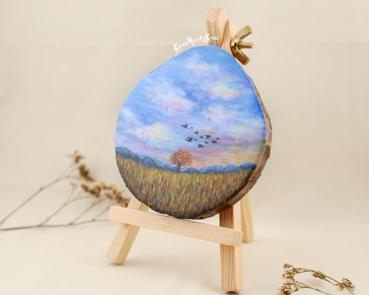 "Autumn's Serenade" Birds in Flight Beneath a Lavender Sky, Acrylic Painting on Wood