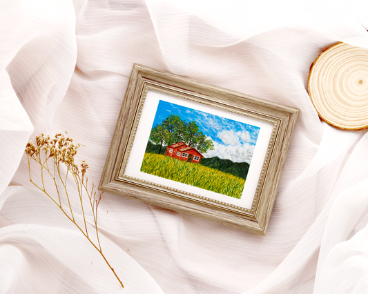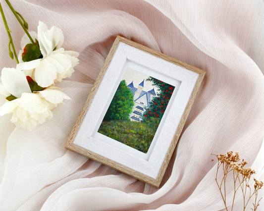 "Cottage in Blue" Gouache Painting (Original Artwork)
