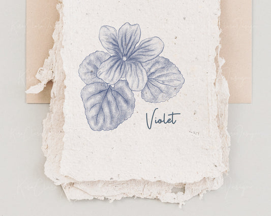 Vintage Violet Flower Illustration / 5 Colors