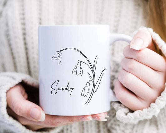 Snowdrop Birth Flower Outline Clipart SVG