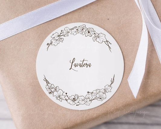 Lavatera Flower (Tree Mallow) Botanical Wreath Clipart