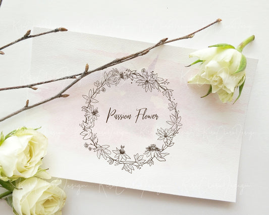 Passionflower (Passiflora Incarnata) Botanical Full Wreath Clipart