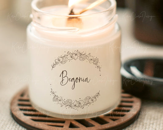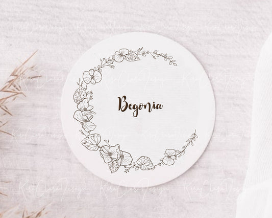 Begonia Flower Half Wreath Clipart / Black & White Color