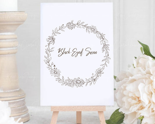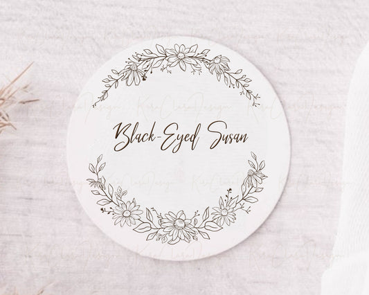 Black-Eyed Susan Flower Full Wreath Clipart Download / Black & White Color