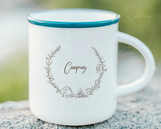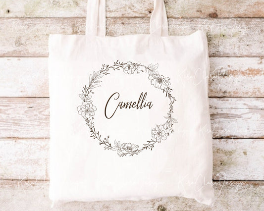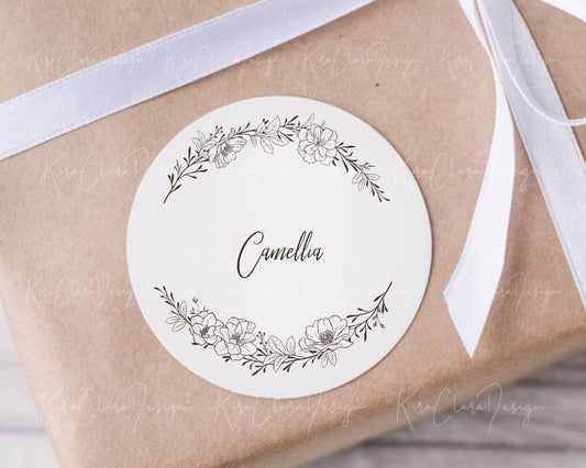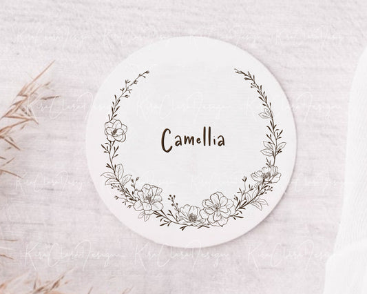 Camellia Flower Full Wreath Clipart / Black & White Color