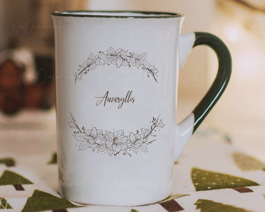 Amaryllis (Hippeastrum) Flower Wreath Clipart/ Black & White