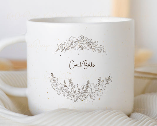 Coral Bells (Heuchera) Plant Wreath Clipart/ Black & White