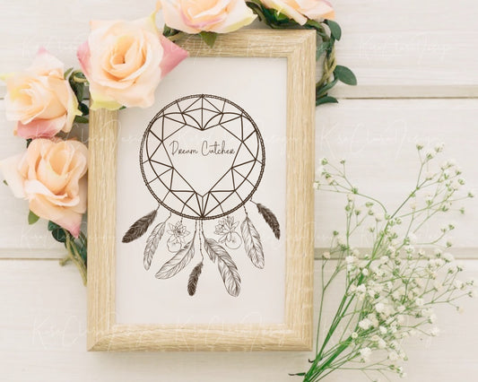 Water Lily Flower Dream Catcher Clipart / Black & White