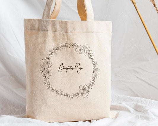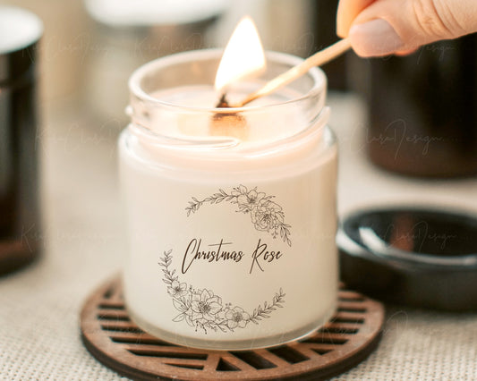 Christmas Rose Flower (Hellebores) Wreath Clipart Black & White