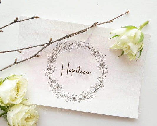 Hepatica (Liverleaf) Flower Wreath Clipart / Black & White