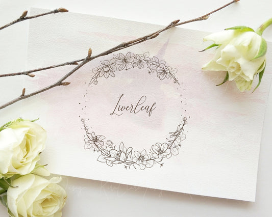 Hepatica (Liverleaf) Floral Wreath Clipart / Black & White