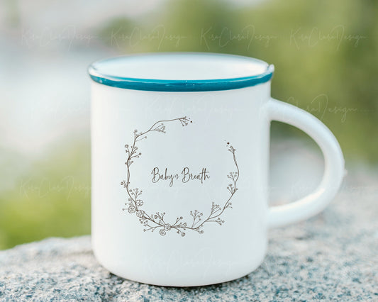 Baby's Breath Flower Circle Wreath Clipart Black & White