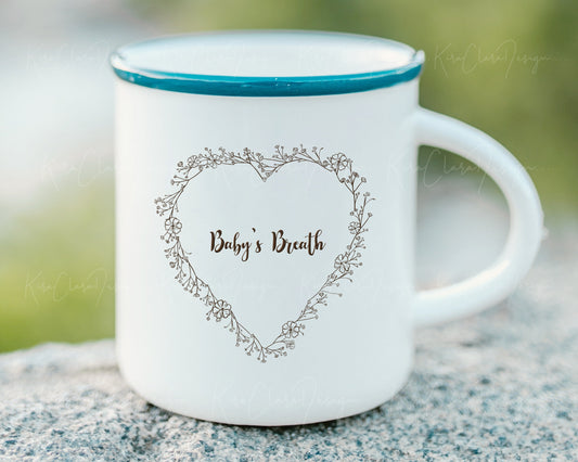 Baby's Breath Flower Heart Frame Clipart Black & White