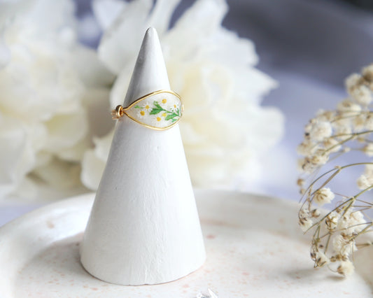 White Daisy Flower Ring / Gold & Silver