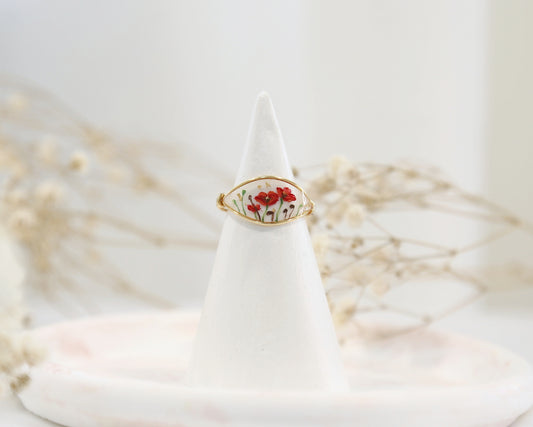 Red Poppy Flower Ring / Gold & Silver