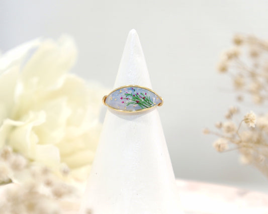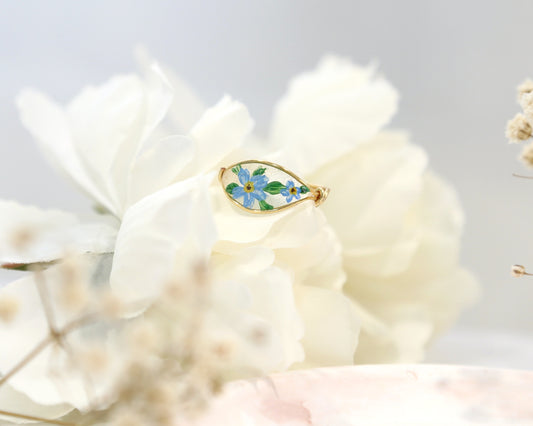 Blue Forget Me Not Flower Ring / Gold & Silver