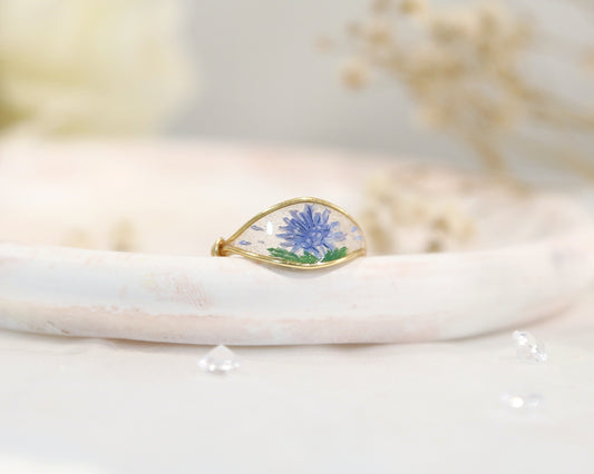 Blue Chrysanthemum Flower Ring / Gold & Silver