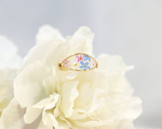 Colorful Forget Me Not Flower Ring / Gold & Silver
