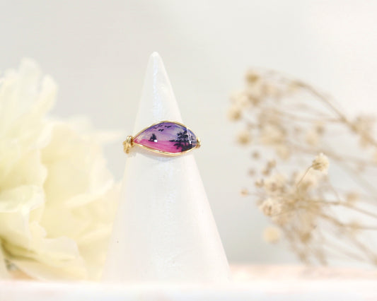Purple Sunset & Beach View Ring / Gold & Silver