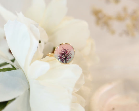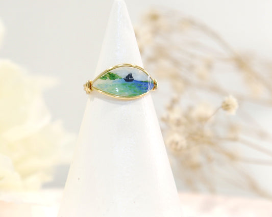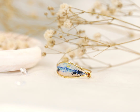 Blue Ocean Pink Sand beach View Ring / Gold & Silver