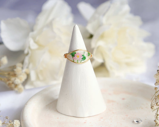 White Lily Flower Ring / Gold & Silver